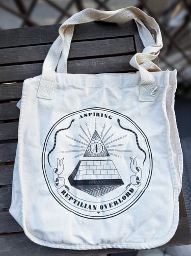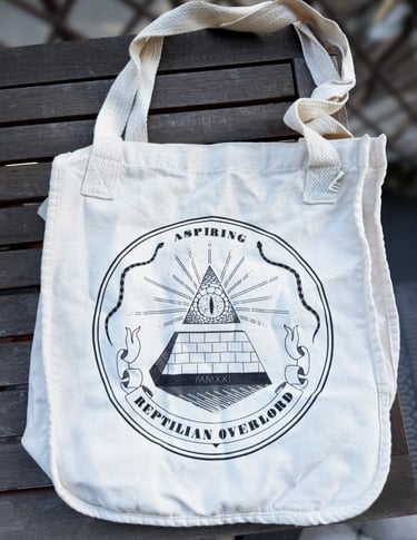 This tongue-in-cheek design was commissioned as a gift for a reptile lover and proud bearded dragon owner. The brief called for something playful, niche, and a little absurd. The final black-and-white vector illustration features the phrase “Aspiring Reptilian Overlord” above a stylized Masonic pyramid and an all-seeing lizard’s eye—an homage to the iconography of the U.S. one dollar bill and the enduring “lizard people” conspiracy theory.